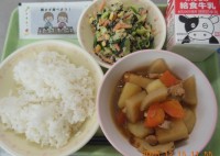 12月15日(月)今日の給食ごはん ぎゅうにゅうかんとう煮 ひじきマヨサラダあじつけのり関東煮は 煮崩れしてなくても じゃがいもは ほくほくしてて とりにく、ちくわ、さつまあげ、野菜も 全部味が...