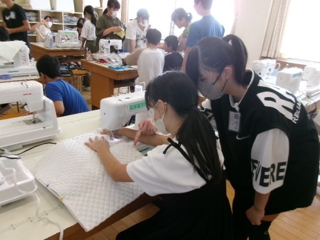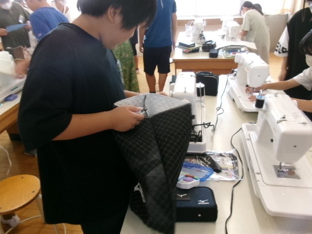 9月17日(水) 6-2は、家庭科の授業として被服室で自分用のトートバッグづくりをおこなっていました。ミシン縫いのしかたもスムーズにできていました。