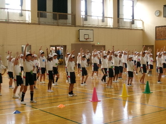 10月6日(月) 3年生は、体育館で、体育の授業をおこないました。