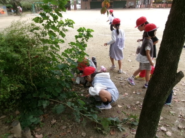 10月14日(火) 1年生は、先週に続き、生活科の授業で秋探しに出かけました。今回は、きざきまち幼稚園がある大通寺の境内にお邪魔して、いろいろな秋を見つけていきました。児童が持っている袋には、葉っぱや木の実、栗のイガなどがたくさん入っていました。楽しみながら、たくさんの発見ができたようです。