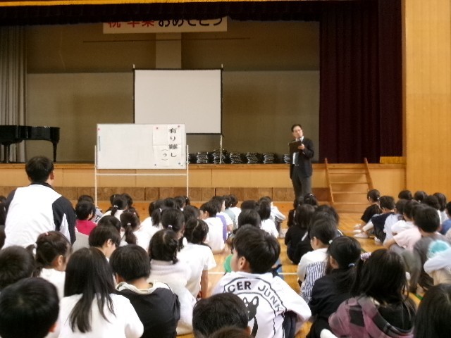 「ありがとう」の秋 公開日 2025/10/15 更新日 2025/10/15 学校行事 10月15日(水) 朝の時間に全校朝会がありました。今回、校長先生からのお話は「ありがとう」についてのお話でした。校内のあちらこちらでみんなを幸せにする魔法の言葉「ありがとう」がたくさんきこえる秋になるといいですね。