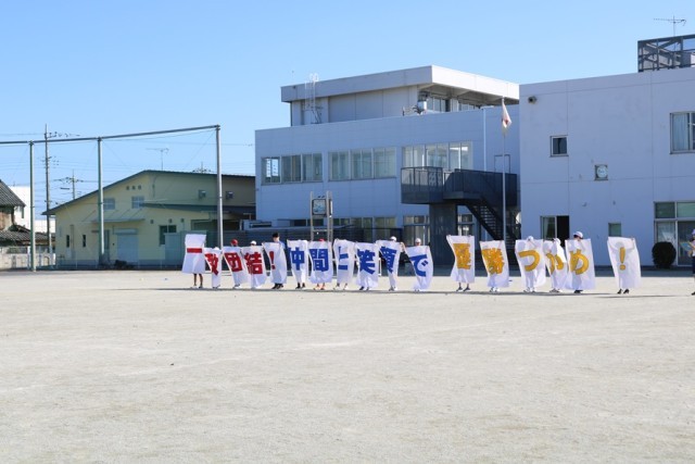 10月17日(金) 朝の時間は、朝の運動でした。今回は、ラジオ体操の練習をしました。また、今年の運動会のスローガンの発表もありました。「一致団結!仲間と笑顔で優勝つかめ!」が児童の前に披露されました。スローガンを意識して、素晴らしい運動会にできるよう、みんなでがんばっていけるとよいですね。