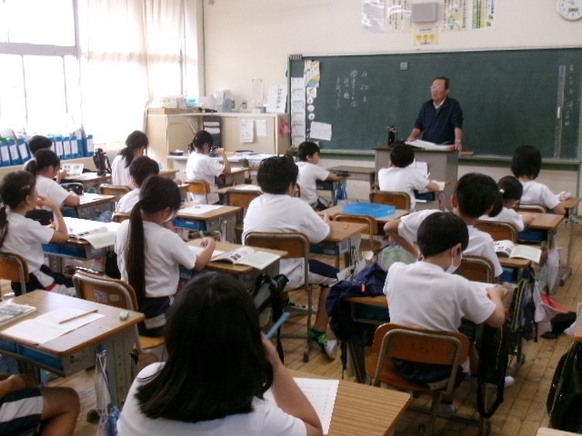 10月20日(月) 4年生は、教室ごとに社会科の授業で木崎地区のことについて、地元の区長さんにいろいろと質問をしていきました。運動会で踊る木崎音頭の成り立ちなど、わかりやすく教えていただきました。