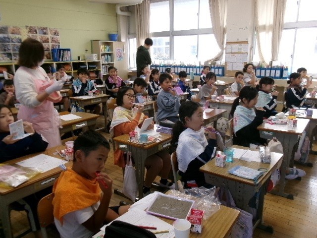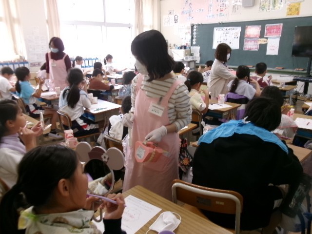 10月23日(木) 4年生を対象に、太田新田歯科医師会の歯科衛生士さん4名の方がお越しになり、歯科保健指導がおこなわれました。歯磨きの大切さと効果的なブラッシングについて教えていただきました。試薬を使って自分の歯磨きではうまく汚れが落とせていないところを確認したあと、改めてきちんとした歯磨きをしました。いつもまでも健康な自分の歯で生活できるといいですね。
