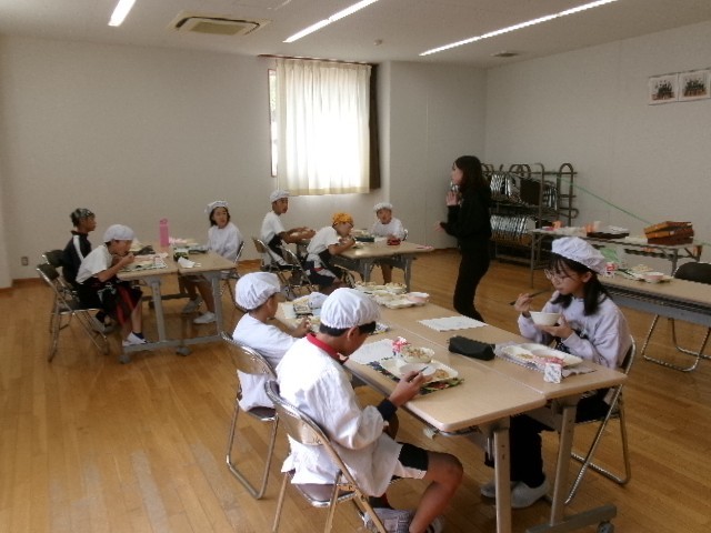 10月23日(木) 給食の時間に、運動会の各団の団長・副団長が集まって、給食を食べながら、話し合いをおこないました。