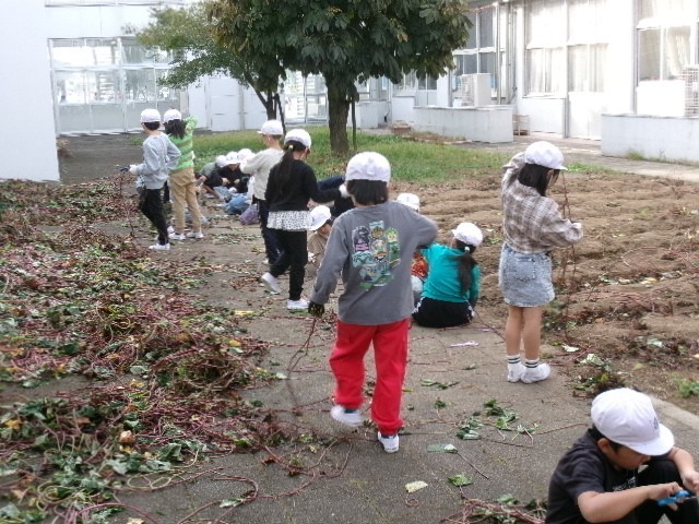 10月29日(水) 2-4は、生活科の授業で、サツマイモのつるを使って、リースづくりに挑戦しました。