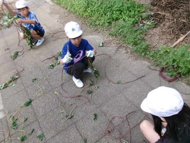 サツマイモのつるでリースづくり