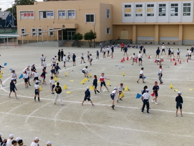 11月6日(木) 5・6年生は、運動会に向けての競技や係分担などの事前確認をしていました。その中でも、遊競技では「フラッグストラテジー」の練習もおこなわれました。団ごとに、いろいろな戦略をたてて、いかに旗を自分のものとしていくかを競っていきます。本番は、どのような戦いが繰り広げられるでしょうか。