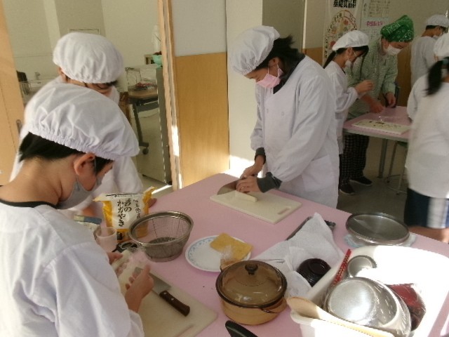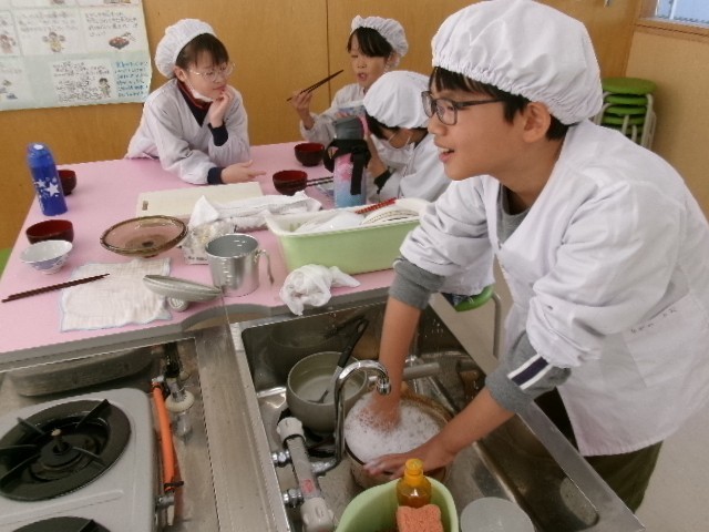 11月19日(水) 5-1は、3・4校時に調理室で調理実習をおこないました。今回は、ご飯とお味噌汁をつくりました。給食前にもかかわらず、ご飯をきれいになるまで試食していました。きっと自分たちでつくったご飯だけに味もひとしおだったのでしょうね。食事後は、調理器具や食器を洗って終わりとなりました。