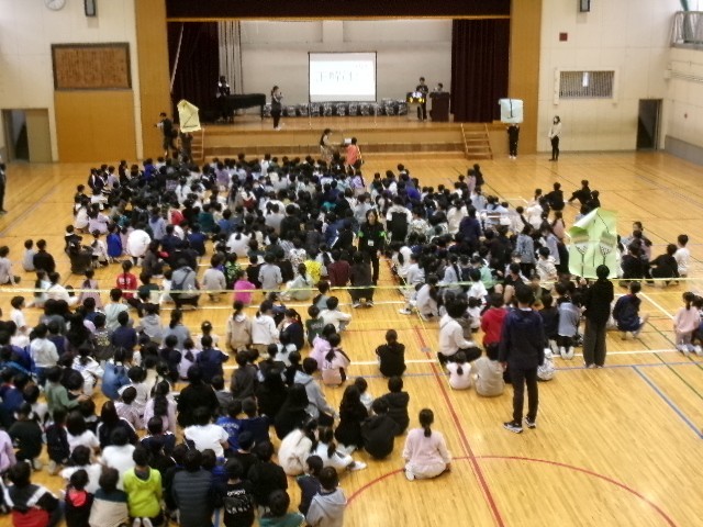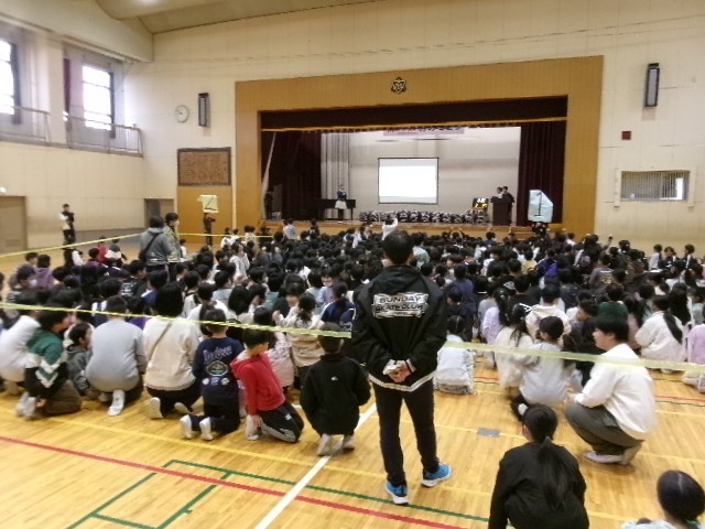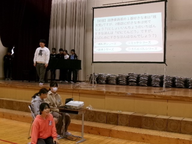 12月3日(水) 朝の時間に、児童集会がおこなわれました。今回は、代表委員会主催の「委員会4択クイズ」がおこなわれました。各委員会の委員長が出題する委員会にちなんだクイズに、児童の皆さんが答えと思うところに分かれて正解を競う内容でした。中には、超難問のパーソナルクイズもあり、盛り上がりました。日頃、5・6年生が学校のために活動している一端が紹介され、4年生以下も興味を示してくれたことと思います。