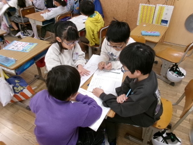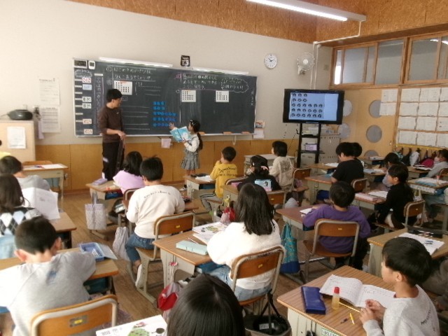12月4日(木) 2校時に2ー3では算数の授業をおこないました。今回は、かけ算を使って、ものの数の求め方を工夫しておこなうことを学習していきました。ものを移動したり、分けたり、引いたりしてまとまりをつくり答えをみんなで相談しながら求めていきました。みんな楽しそうに話し合いをしながら、考えを深めていきました。