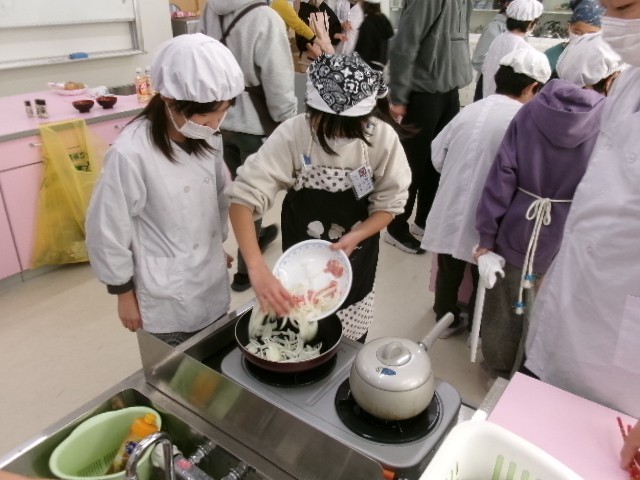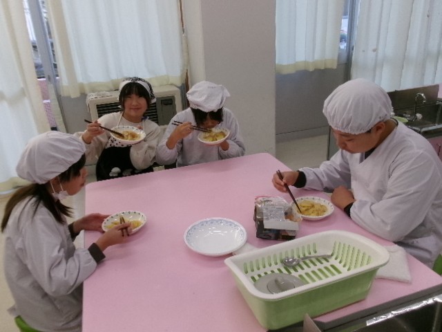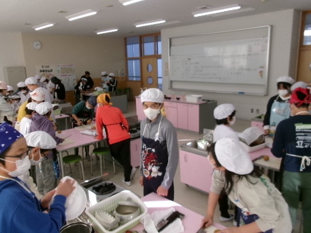 12月4日(木) 5・6校時に、調理室で6-2の調理実習がおこなわれました。4名程度のグループでジャーマンポテトづくりをしました。今回もボランティアの先生やALTの先生が指導をしてくださいました。どの班もテキパキと作業をすすめていきました。給食後でしたが、みんなおいしく試食をすることができました。
