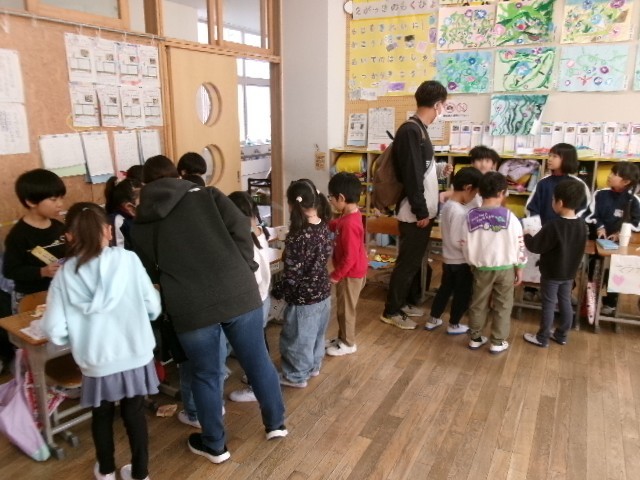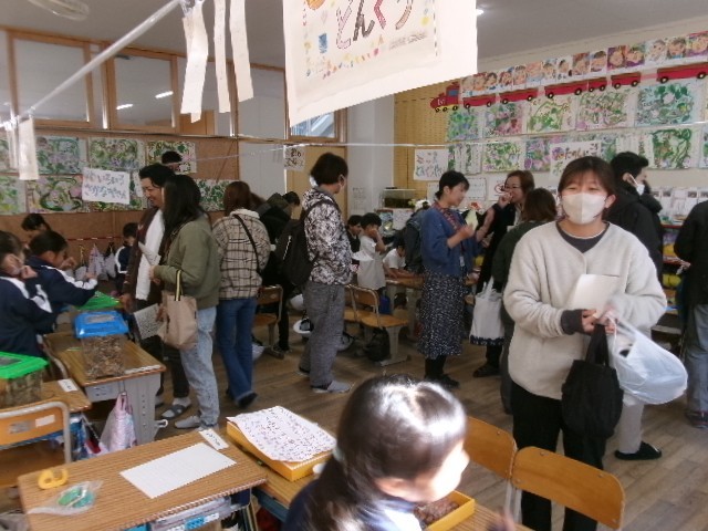 1年生の教室では、おもちゃ屋さんがオープンし、保護者の方や近くの保育園の園児がお客さんとなって楽しんでいただきました。