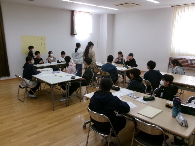 12月11日(木) 給食の時間に代表委員と各委員会の委員長が集まり、児童集会の反省をおこないました。