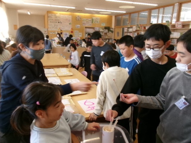 昼休み、図書室へ行くと、図書委員会による本の福袋の抽選がおこなわれていました。