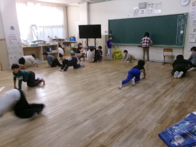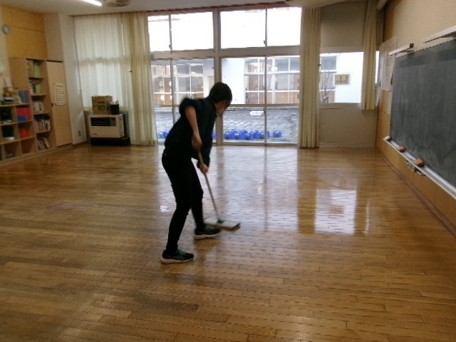 児童の皆さんが下校した後、担任の先生等が教室のワックスがけをおこなってくれました。