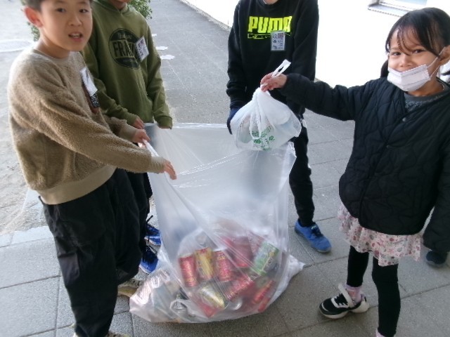 たくさんのアルミ缶を児童の皆さんが持ってきてくれました。