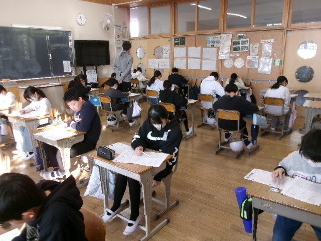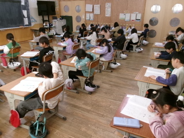 1月16日(金) 1・2校時に全校で国語と算数の学力テストをおこないました。