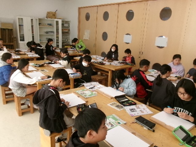 1月20日(火) 4-3は、図画工作の授業を図工室でおこなっていました。