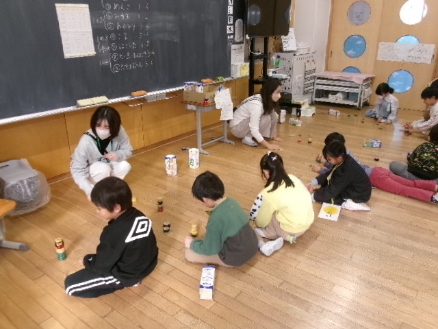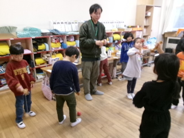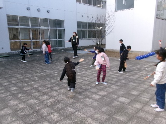 1月21日(水) 1年生は、生活科の授業で、「むかしあそび」をおこないました。