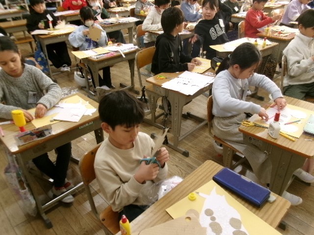 1月30日(金) 3-1では、図画工作の授業で版画づくりに挑戦していました。