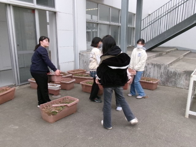 飼育園芸委員会は、空いているプランターの整理をしました。