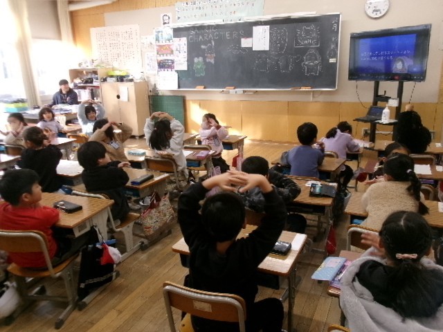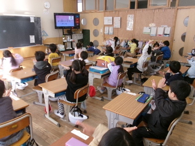 各教室では、ジェスチャーで○✕をあらわし、解答が出るたびに歓声があがっていました。