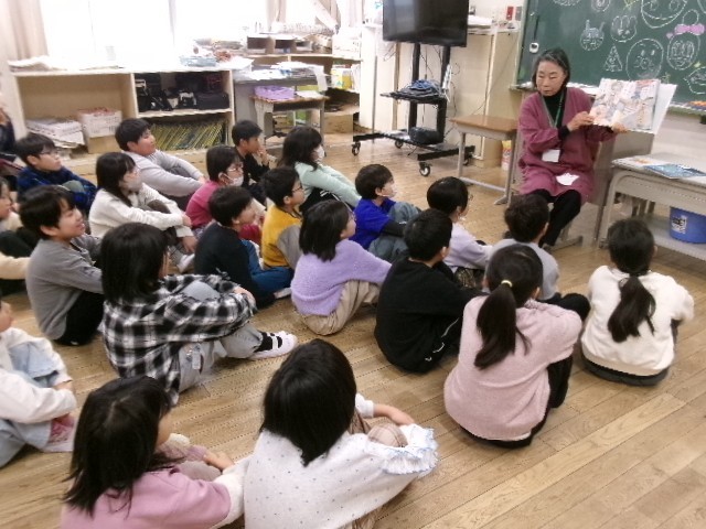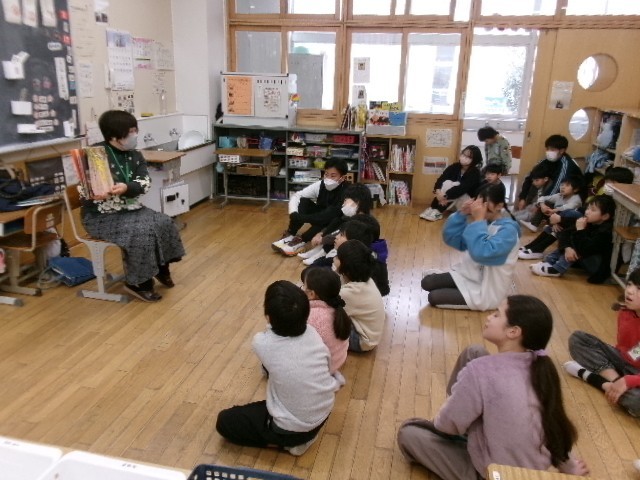 2月17日(火) 朝の時間に、1・3年生と特別支援学級で読み聞かせがありました。