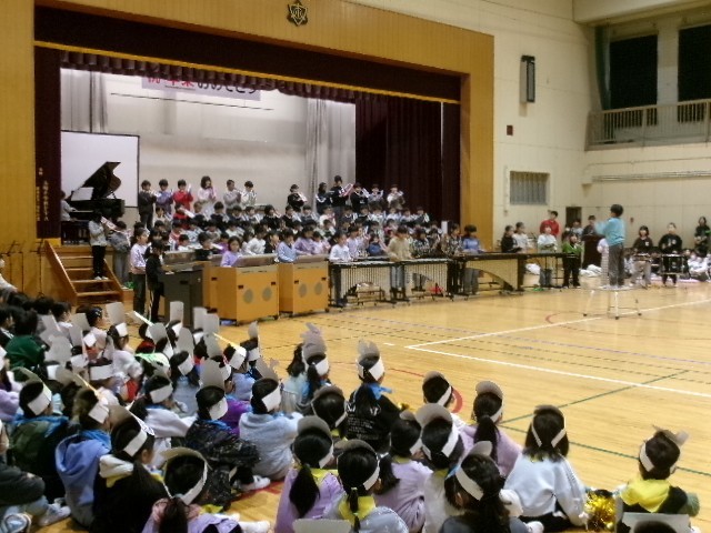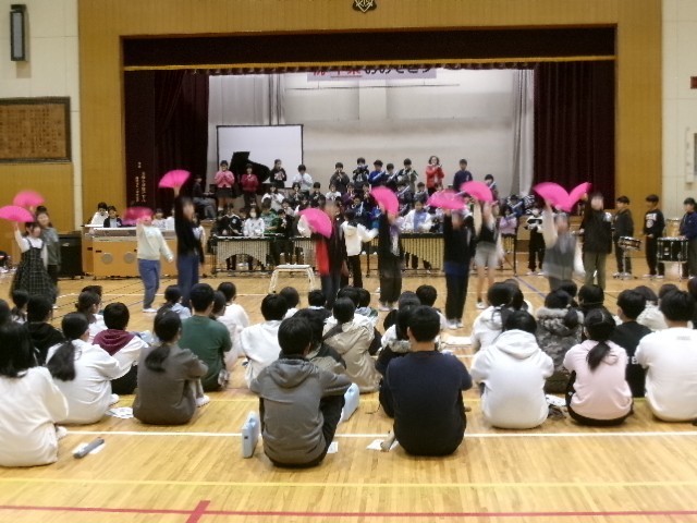 次に、4年生による「明日を信じて」の合唱と「千本桜」の合奏がありました。