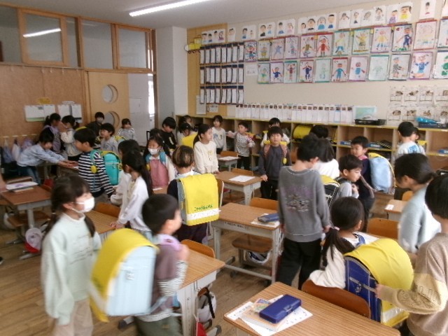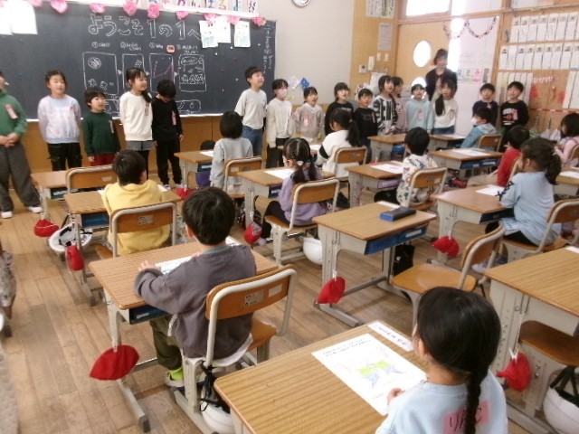 1年生の児童の皆さんが、教室まで連れていき、教室で歌や線なぞりなどをおこないました。