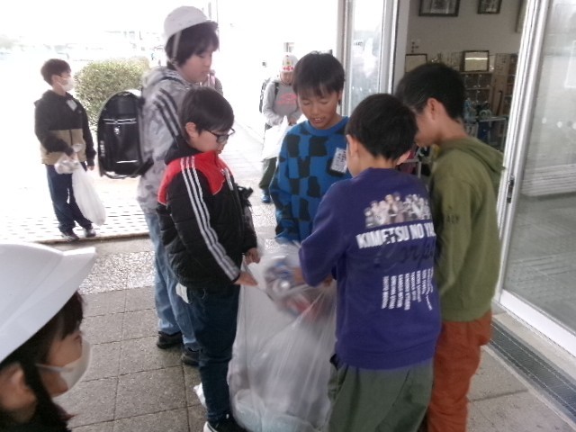 3月3日(火) あいにくの雨模様となりましたが、登校時にJRC委員会による、今年度最後のアルミ缶回収がおこなわれました。
