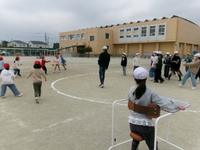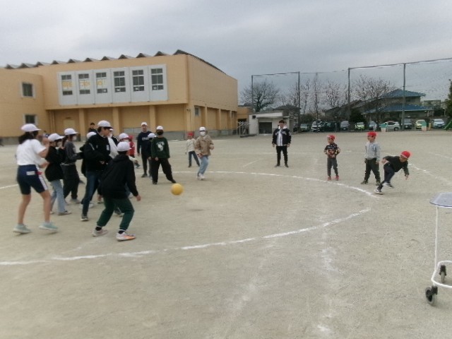 3月18日(水) 1-1と6-2の児童が、校庭でレクリエーションをおこないました。