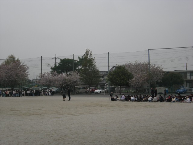 あいにくの重たい空でしたが、新任式・始業式は、校庭で行えました。