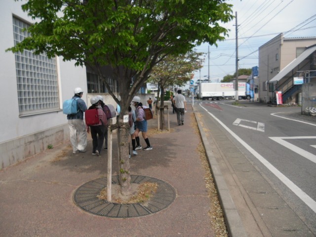 また、徒歩通学児童と一緒に職員が同行し、通学路点検を行いました。