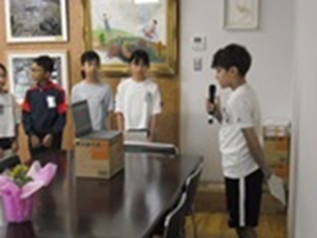 校長室から配信しました。ちょっと緊張気味の委員長さんでしたが、はっきりとそしてしっかりと委員会の活動について紹介をできました。