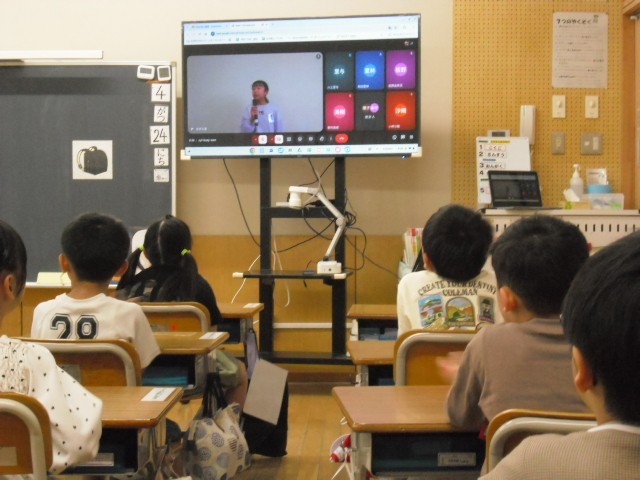 教室では、全児童がモニター画面をよく見て、放送をよく聞いて、委員会について理解を深めました。