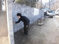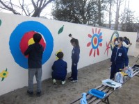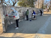 6年生が3学期に行う学校への感謝奉仕作業に向け、的あての清掃をPTAボランティア...