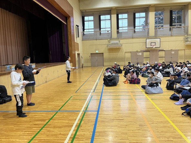 小雨降る中、体育館で出発式を行い、元気な6年生みんなでいざ鎌倉方面へ修学旅行に出発です。保護者の皆さんの応援と生小っ子パワーで、台風も追い払いたいですね!