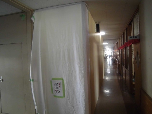 トイレ改装中のため、前校舎の西側のトイレが使えず不便ですが、子ども達は先生の話をよく聞いて、細くなった廊下をぶつからないように歩いたり、別の場所のトイレに行ったり、工事の人にあいさつしていたり・・・しっかりできてるのが偉いなぁと感心しています。きれいなトイレを使える日を楽しみにしましょう。