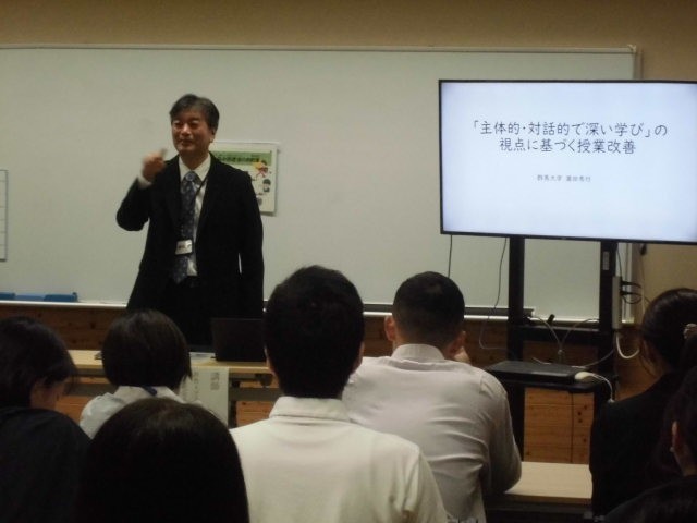 群馬大学共同教育学部人文社会系国語専攻の、濱田秀行教授を講師としてお招きし、「交流活動を中心とした国語科の学習指導について」と題して講義をいただきました。