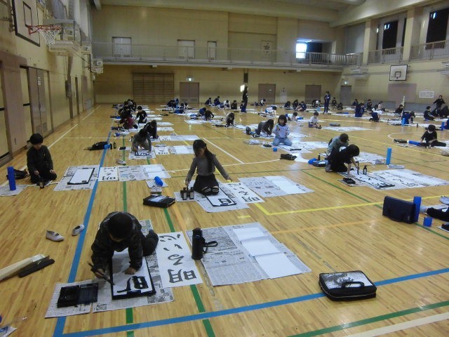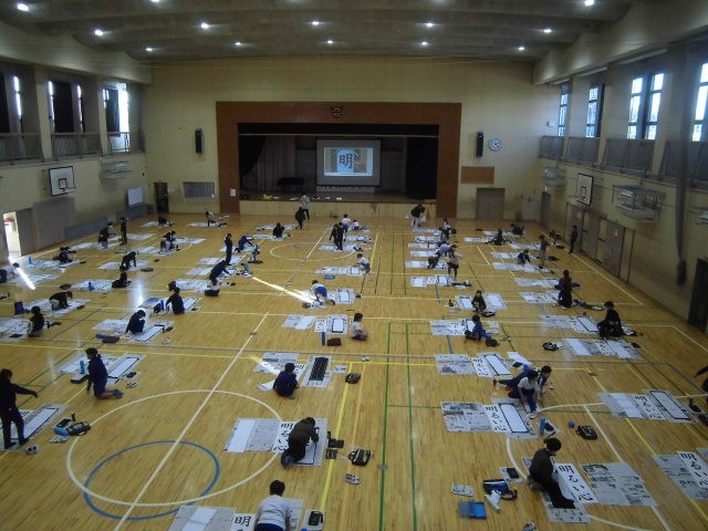 冬休み中に家で練習をして、1月には本番の1枚を同じくこの体育館で書き上げる予定です。成長が楽しみです。