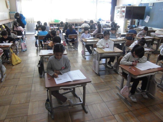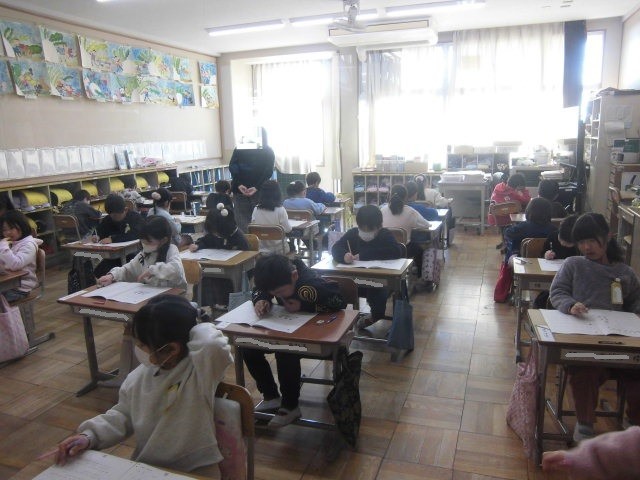 初めて取り組む1年生は、少し緊張しながら一生懸命問題を読んで答えていました。3月には結果が戻って出ます。自分自身を振り返るきっかけにして欲しいですね。