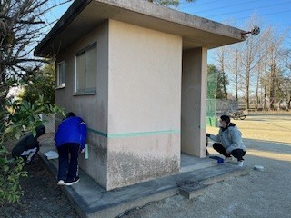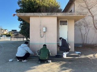 ペンキを塗るための下地塗作業です。寒い中頑張りました。