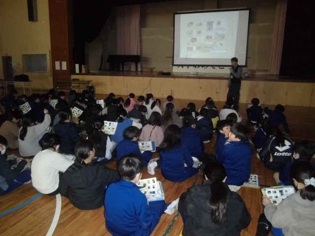 尾瀬保護財団の講師の方をお招きして、移動尾瀬自然教室を行いました。4年生は、尾瀬の自然についてのスライドを見たり、タヌキの毛皮に触ったり、オコジョのぬいぐるみを触ったり・・・