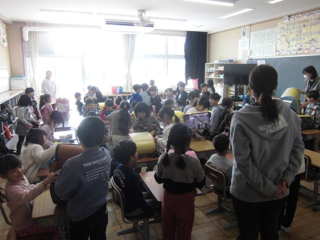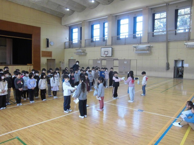 生品保育園、生品の風から年長さんがやってきて、1年生と交流しました。この日のために準備してきた1年生は、お兄さんお姉さんとしてしっかり年長さんをサポートできました。4月に一緒に学べるのが楽しみですね。