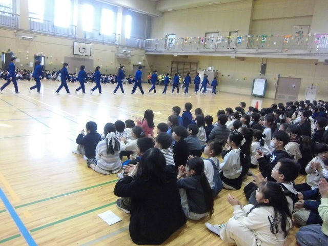 そして、6年生が団旗を5年生に受け渡し、最後に見納めとなる生品小ソーランを全校児童に披露して、送る会は幕を閉じました。