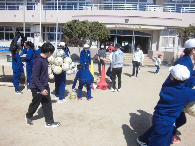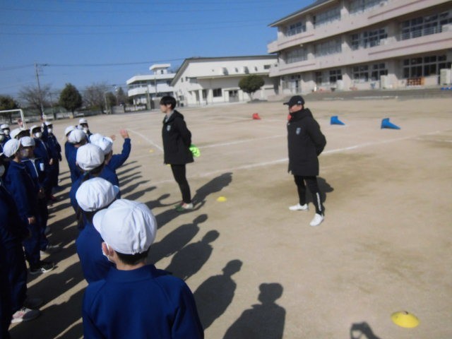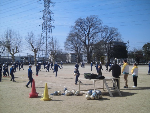 群馬学校生協と明治安田生命の協賛で、ザスパクサツ群馬の2名のコーチを招いて、6年生全体対象のサッカー教室を行いました。