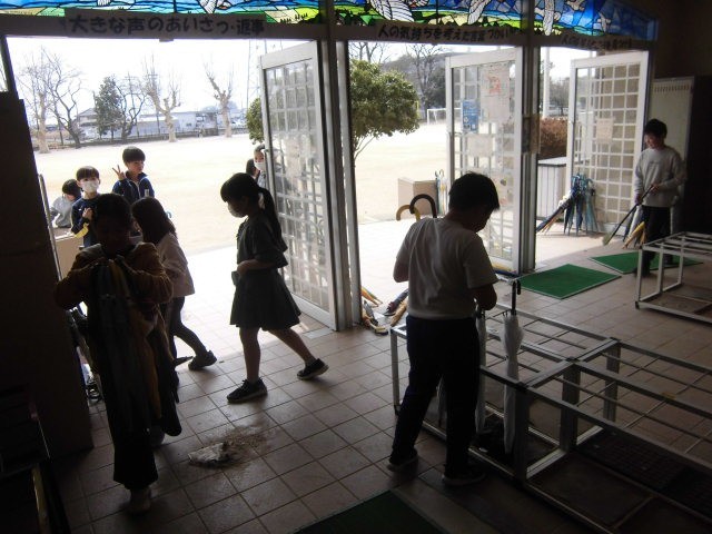 明日の卒業式に向け、4校時に4年生が、6年生への感謝の気持ちを込めて掃除をしてくれました。職員玄関や体育館の玄関、通路のお花など、丁寧にお掃除してくれる姿に、生品小の「思いやり」の伝統は引き継がれているなと感じました。