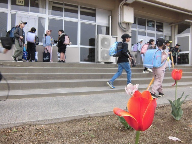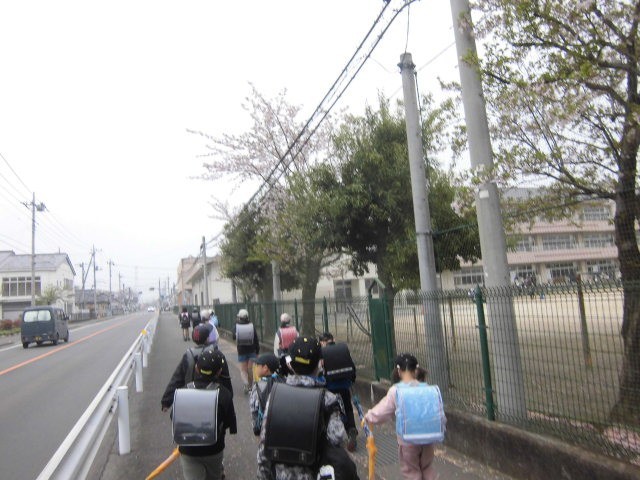 令和8年の新学期が始まりました。子供たちは、交通指導員さんや旗振りの方、おまわりさんに見守られ、元気に登校できました。