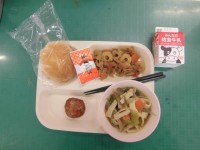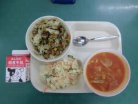 今年のサンダ飯は、カレーピラフ味です。サラダには、生品中給食委員さん提案の体作り...